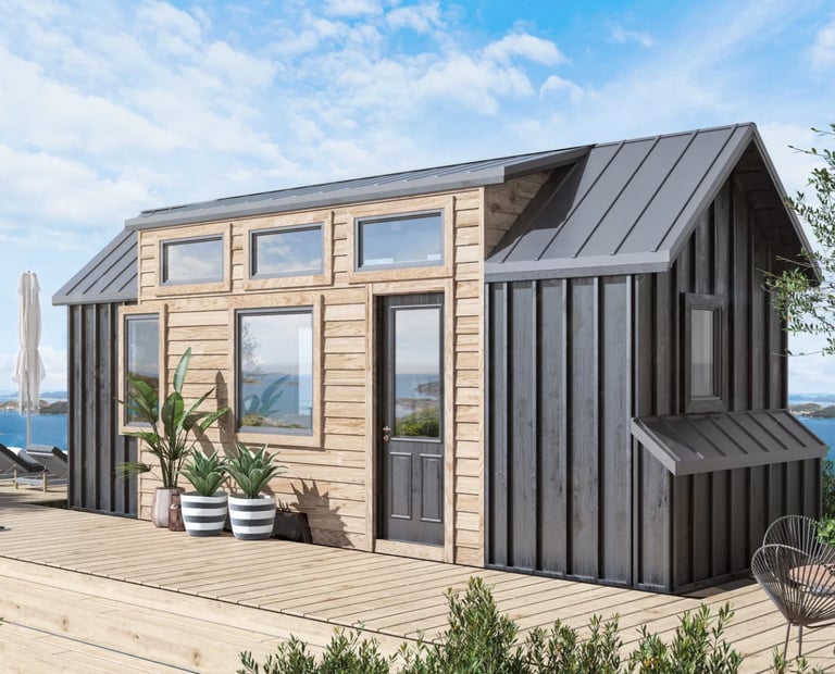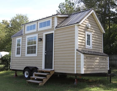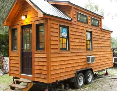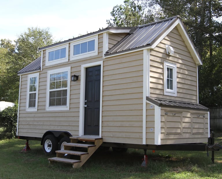 A single level tiny house with a traditional look