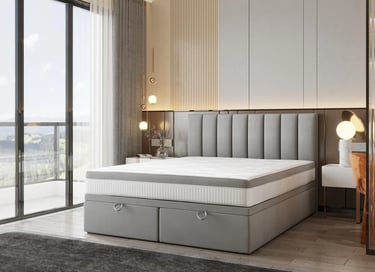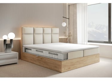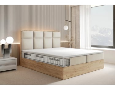 The aesthetic experience is enhanced by longitudinal, spacious quilting. A wide range of color options makes it easy to match the bed to the overall room decor. An additional asset is the LED headboard lighting, making relaxation even more enjoyable.