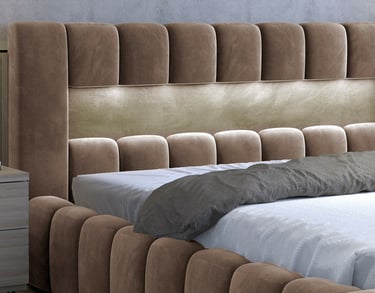 Lamica Upholstered LED Storage Platform Bed - Beige